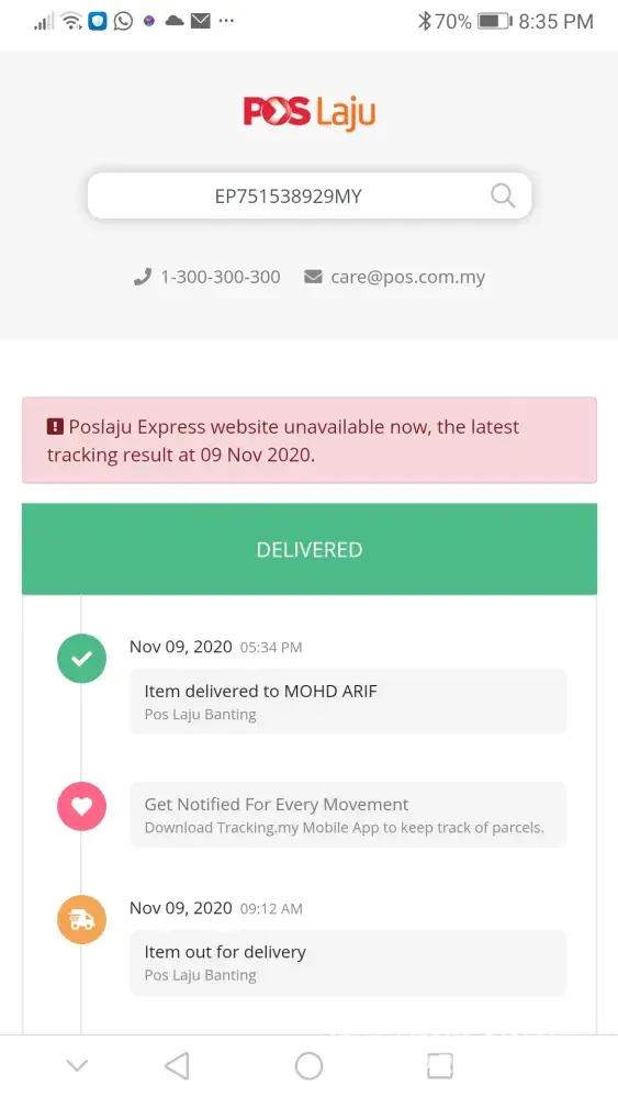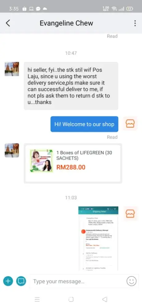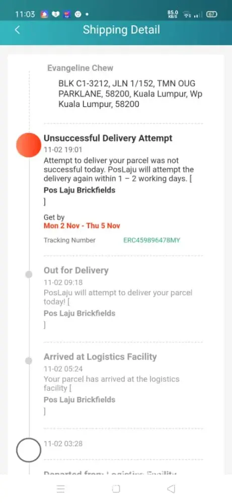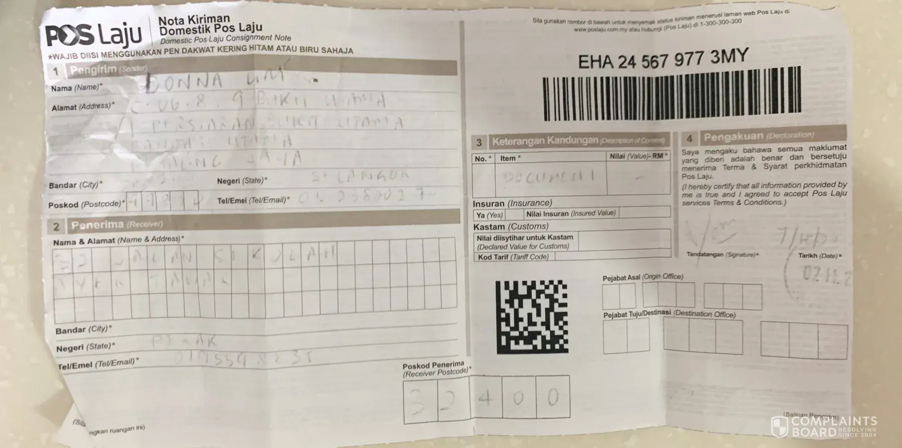 Pos Malaysia Lazada's buyer complaint for late deliver