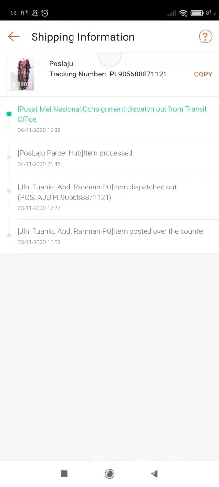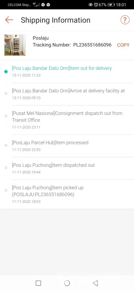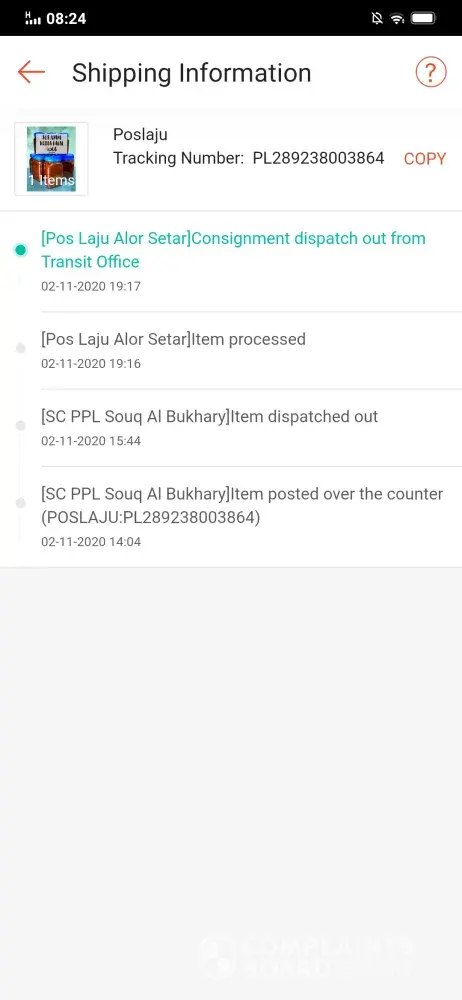 PL289238003864 this item still in pos laju Alor Setar since 2.11.2020