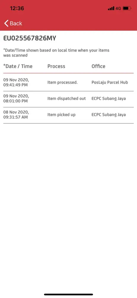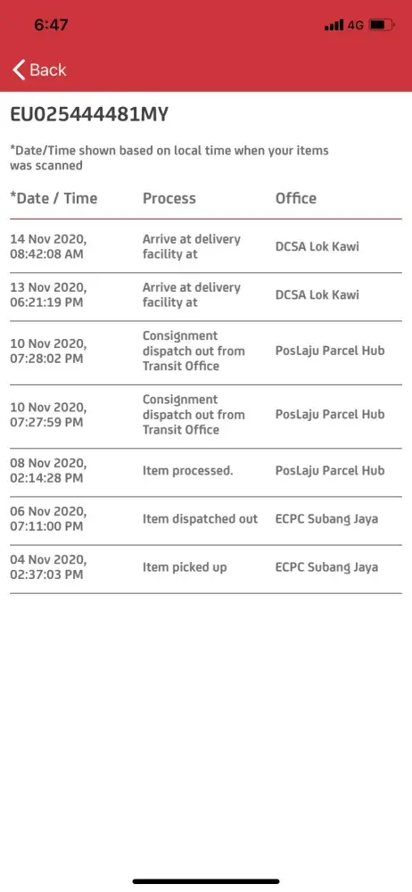 Pos Malaysia 4 day item stuck in ecpc subang jaya