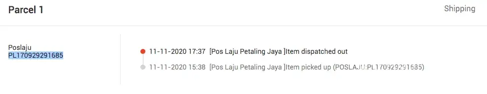Hi I send 2 parcels to Pos Besar Shah Alam on 6 November 2020