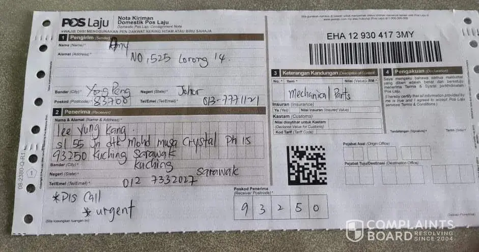 Complaint on POS malaysia feedback