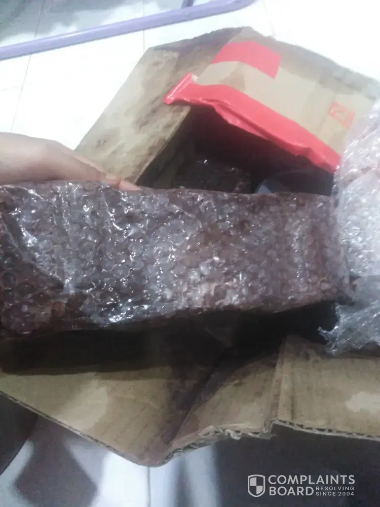 Dalam box tu ada chocojar 15 balang, semua rosak, coklat semua tkeluar dri balang tu and kotak pun rosak. Saya dah tak boleh jual dekat sini, saya bayar rm200 tahu termasui sekali dengan servis kamu ni. Barang saya ni saya bayar rm200 bukan rm2. So sekarang ni saya nak minta refund duit saya