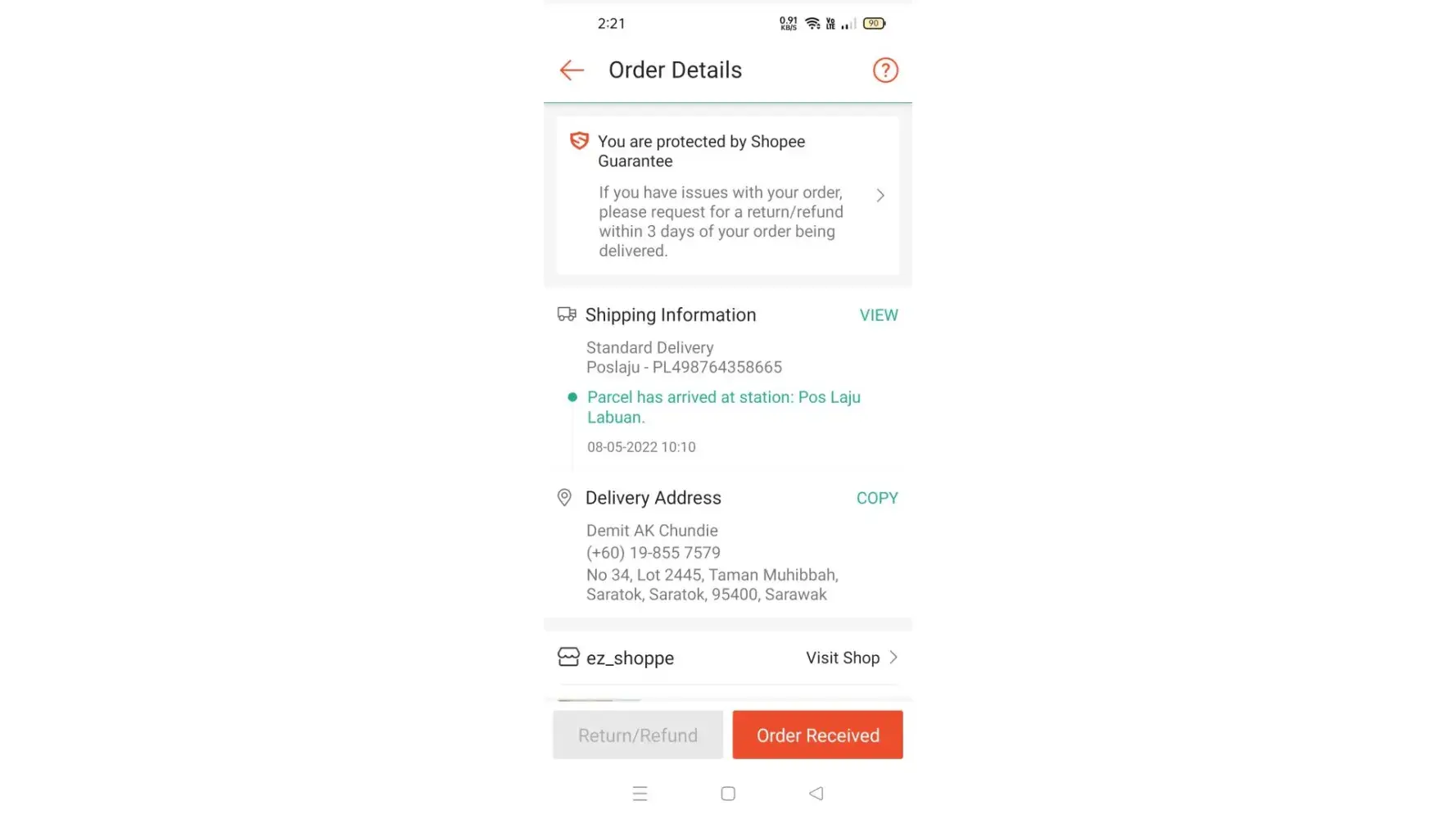 Saya order barang dari shopee di mana ya adalah Klang Selangor, tetapi di pos ke Labuan Sabah. Saya tinggal di Sarawak