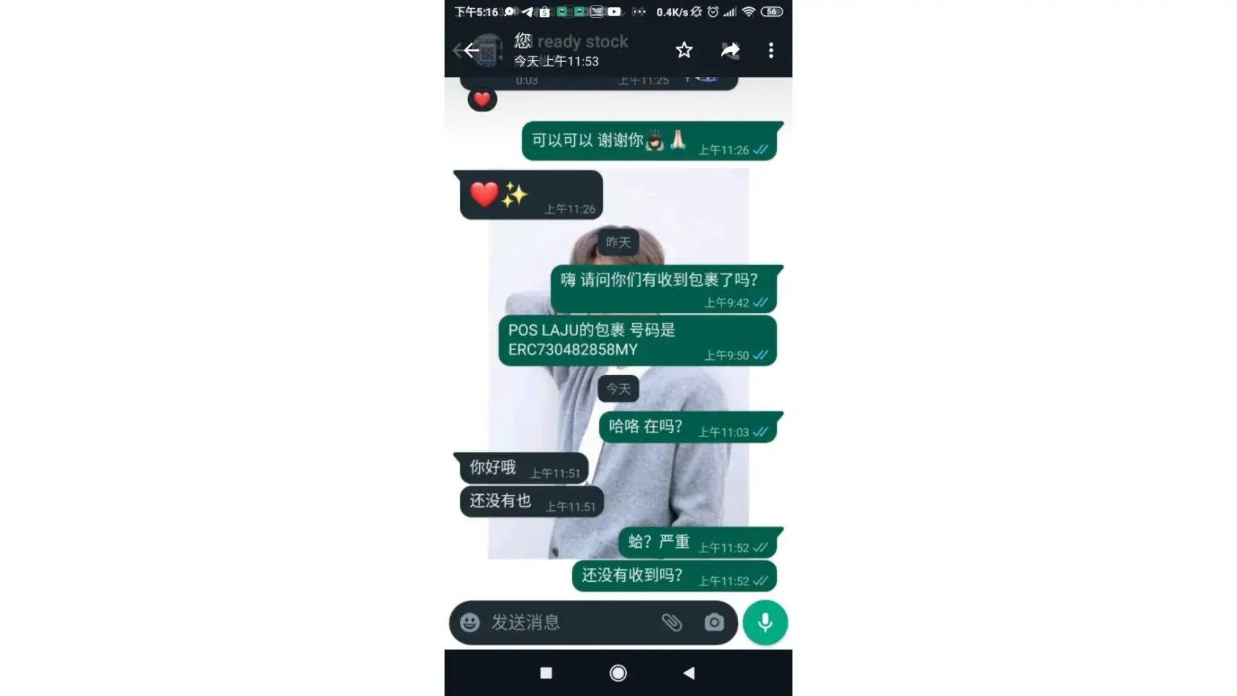 Tracking number LY500880382MY, status received. .tapi saya tak ada terima pun. call pun no answer.