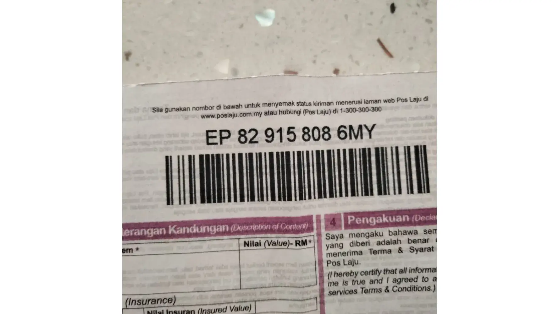 Ini adalah nombor tracking saya untuk pihak pos laju tracking parcel saya ERC726479203MY
