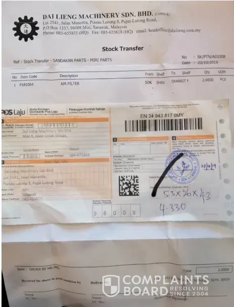 Reporting that unfortunate during goods arrive our Miri Sarawak Warehouse boxes badly damaged. It maybe exposure to rain / water. We highlight to Pos Laju Malaysia kindly delivery materials in good condition in next time. We hope this complaint will help you to improve the service.