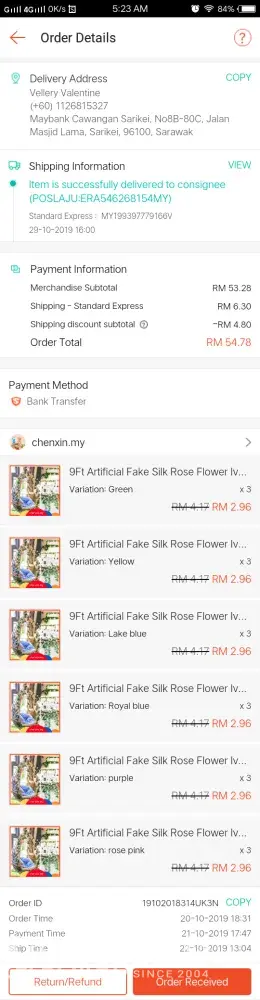 Saya tunggu sehingga ke hari ni (26/10/19) tapi masih belum terima.