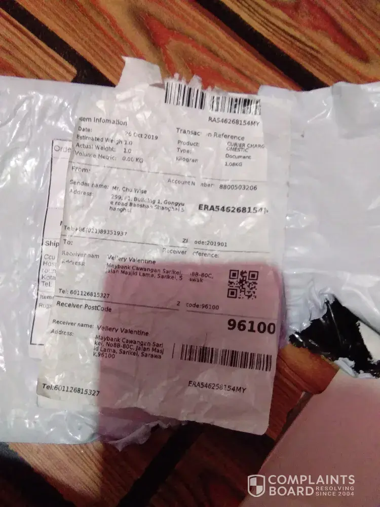 Parcel Tracking No: ERA711375388MY.