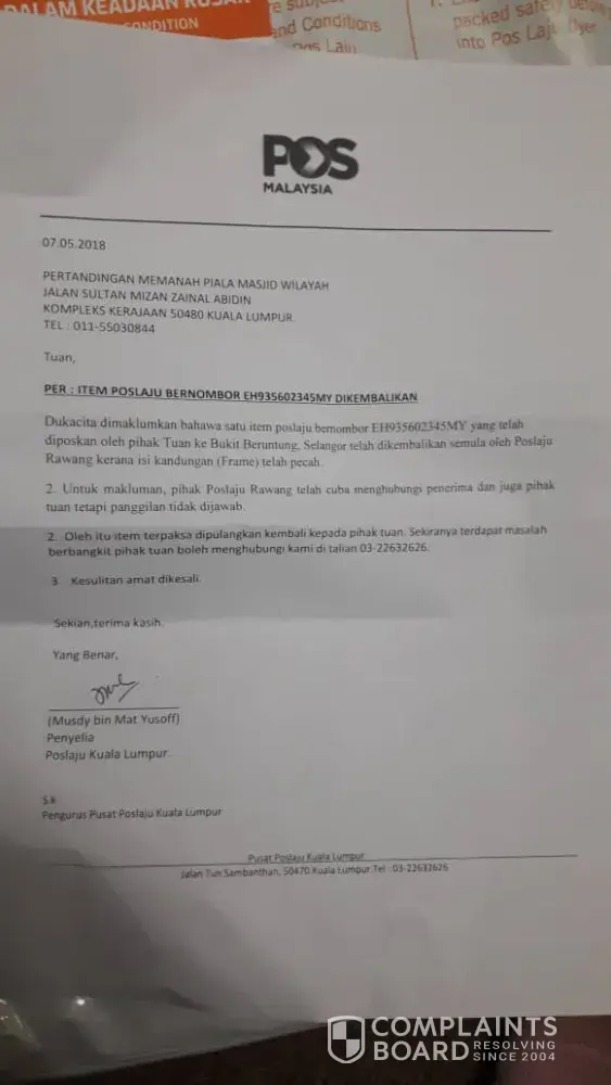 Pos Malaysia Complaints Page 40 of 84