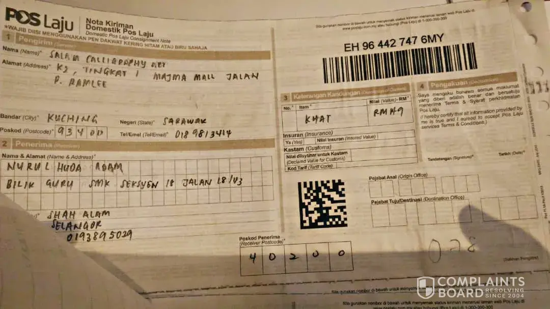 Mohon kerjasama dari pihak Pos Laju Malaysia.