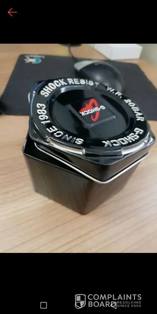 Apabila saya membuka parcel tersebut, saya dapati kotak jam G-Shock telah terbuka dan ada bekas kemek pada penutup kotak dan didapati jam tangan saya