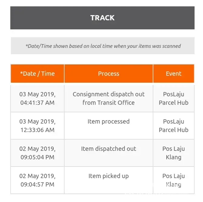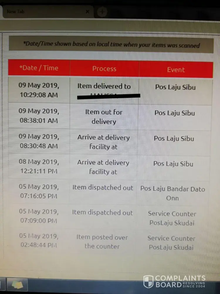 Tetapi, parcel hanya tiba di Poslaju Sibu pada 8/5/2019 @ 12:21pm. Kenapa ambil masa Tiga (3) hari untuk sampai di PosLaju Sibu, Sarawak? Yang buat lagi confuse, Parcel saya Sekali lagi sampai di Pos Laju Sibu pada 9/5/2019 @ 8:30am. Parcel kemudian dikeluarkan utk penghantaran pada 9/5/2019 @ 8:38am. Kemudian parcel telah berjaya diserahkan (delivered) bersama lain2 parcel di pejabat pada 9/5/2019 @ 10:29am. Ini Kronologi kes.