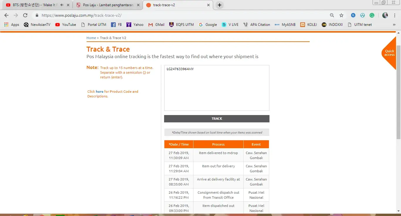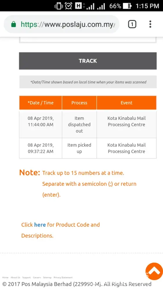 1. Barang dah sampai di backend Poslaju Rawang pd 2 april 2019