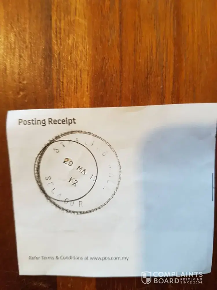 jadi saya mohon pihak PosLaju Malaysia bertanggungjawab di atas kerugian ini.