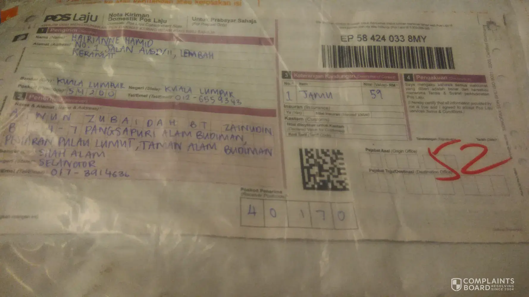 issue product yg sy hantar kene campak ngn staff pos laj mlysia