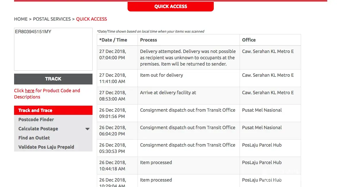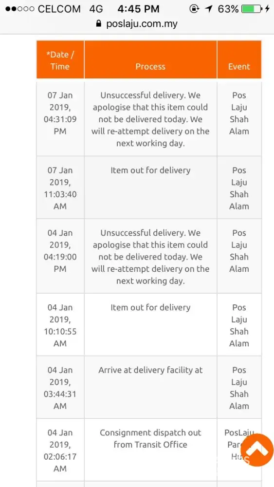 I would like to make a complaint against Poslaju delivery. I made an order on Shopee and they send it thru Poslaju delivery. I supposed to get it by December 27, 2018. I gave them time until now since I thought there is just a delay in the shipping until I noticed that they attempted to send it to the wrong address when I checked the delivery status. I only checked it now since I am out of the country and busy with my works. I have a proof that me and the sender put the correct address and its the fault of delivery guy. So I called the customer service hotline today, January 11, 2019 to atleast provide a second delivery for me. She said that I will be needing to collect it myself since its December 27. But when I hang up the phone and checked, its very far and I dont drive in KL and the grab is very expensive. Much expensive than the item.
