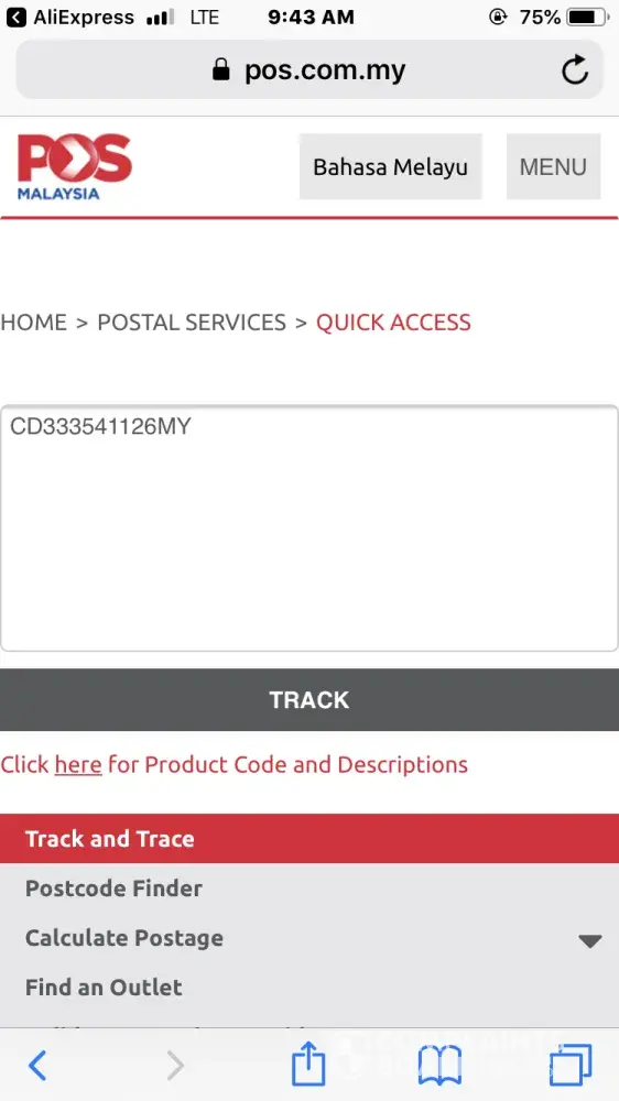 Pos Malaysia Pos laju consignment no cd333541126mj