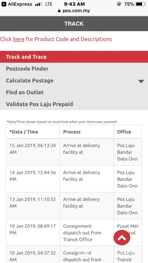 i pos a motor at 9/1 and that person tell me will be pos within one week... but until now18/1 didn't reach... seriously? so long time? i pos it from penang bukit mertajam to perak kampar. 14/1 it arrive at ipoh and from ipoh to kampar only half hour but don't want to send to kampar for me and until now 18/1 still didn't arrive? what a bad service...