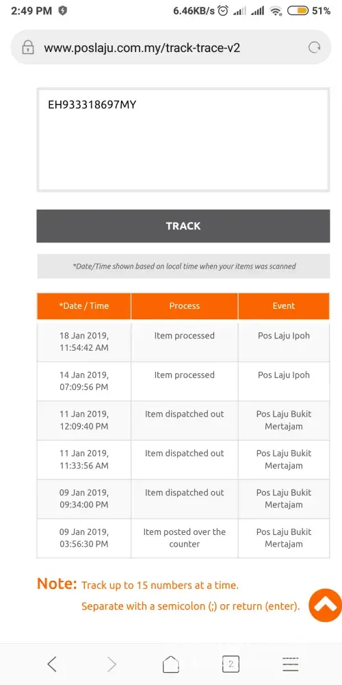 Barang dah diterima oleh cawangan dato onn ni since 13/01/19. Dah 3 hari bertapa kat situ.