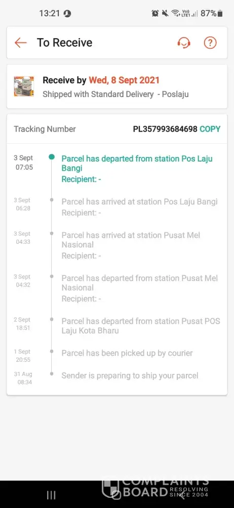 Barang sy dah sminggu lebih pos tksmpai2. Pegi dkt pjabat pos kata brg dkt poslaju caw lain tp belum boleh ambil esk bru dia pos. 2hri lps tu smpai msj brg tkboleh hntr tkde org kt rmh. Sdgkan sy ad kt rmh. Sy call ckap nk self pick up dkt pejabat pos hrini. Pg td dia call balik cakap dah tnggal brg dkt pjbt bila prgi tkde parcel tu posmen dah bawak keluar. Service sgtla teruk!