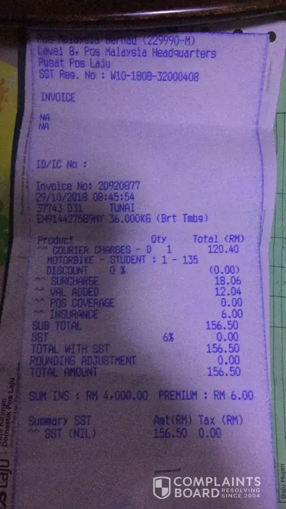 First of all, once i pick-up this poslaju man already throw me his anger by raising up his voice, and scolded me for not being home!