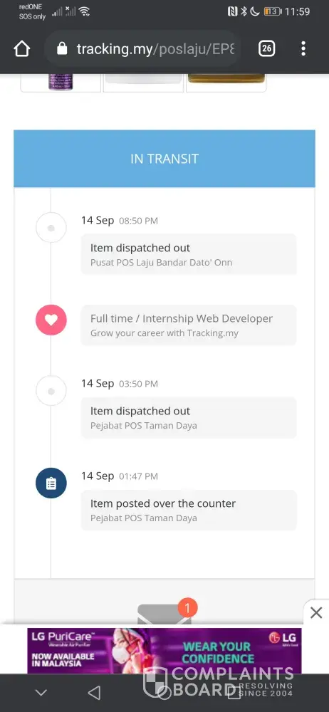 I did my parcel from Kuching with consignment number CD351976075MY to Labuan on 13.9.2021