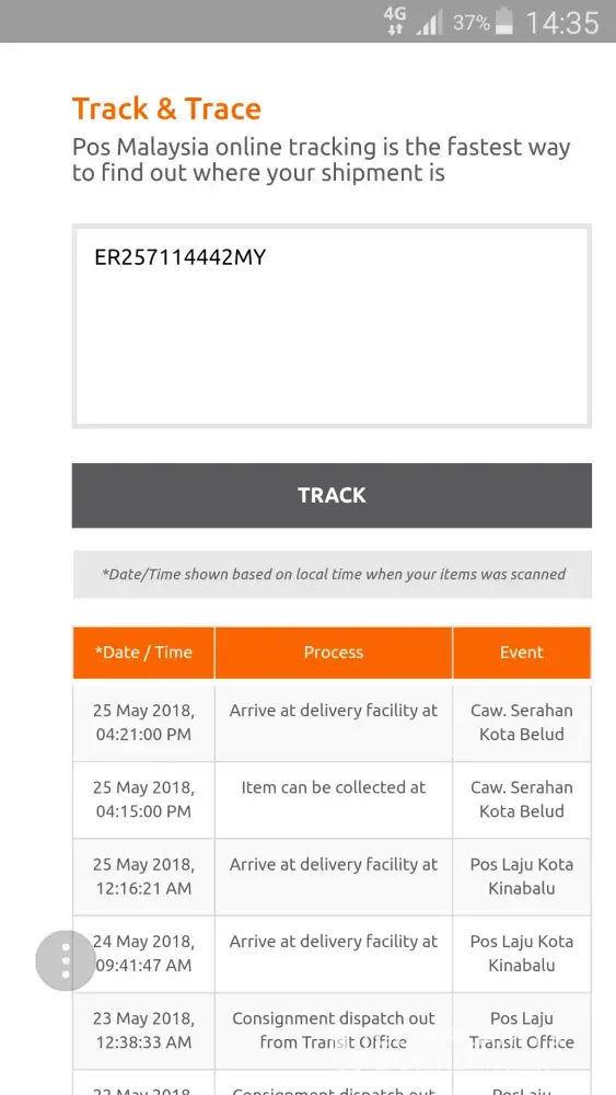 Hopefully pos laju can help us to update the system tracking and urgently deliver the parcel as soon of possible