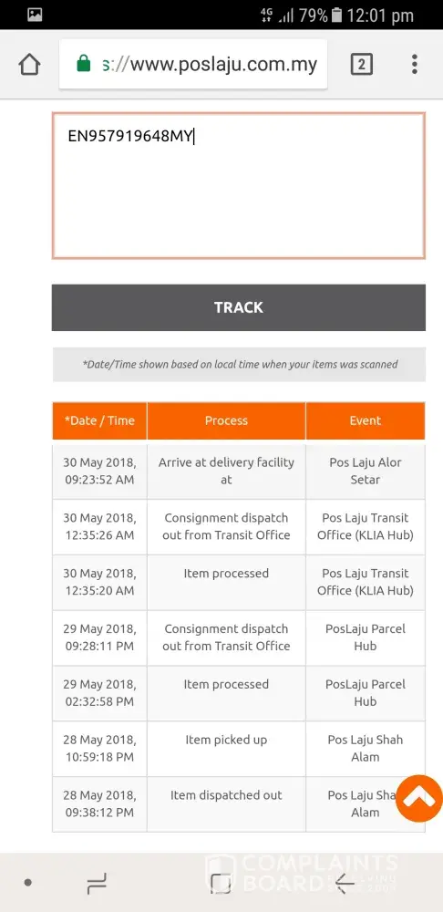 Pos Malaysia my item cd344743739my tracking status not updated since 19 may