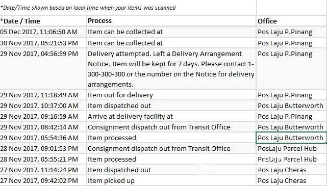 Pos Malaysia shipment undelivered and unanswered emails/calls