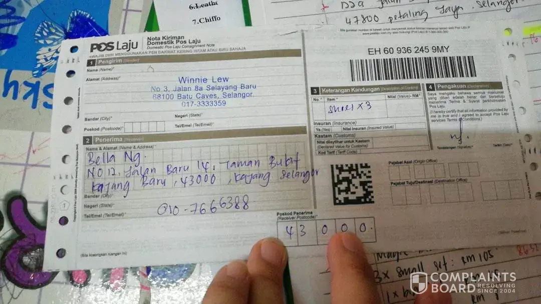 Pos Malaysia no delivery made; no calls answered; no emails replied