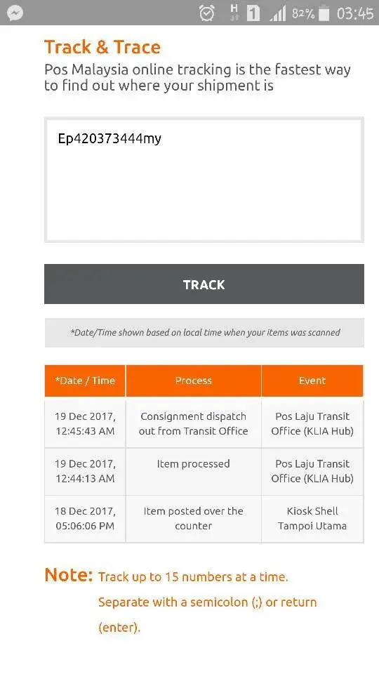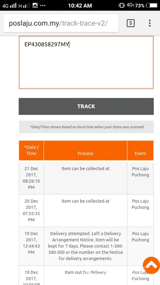 Pos Malaysia parcel pending from 18/12/2017 (ep420373444my)