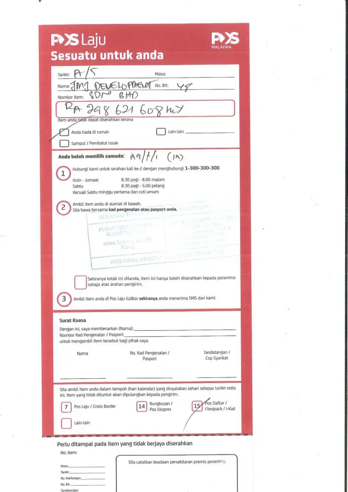 Pos Laju in Kelantan especially Machang has terrible service. Although the parcel only throughout the district, its took 5 days. Please improve it.