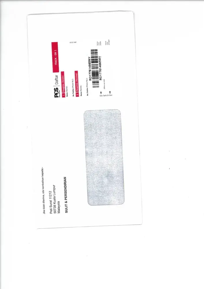 I would like to complaint that the service provided by the postman who send me the letter RD177614665MY that pos daftar mail was not signed by anyone of the receiver but they require the FULL IC for receiving the parcel tracking number which is under my name