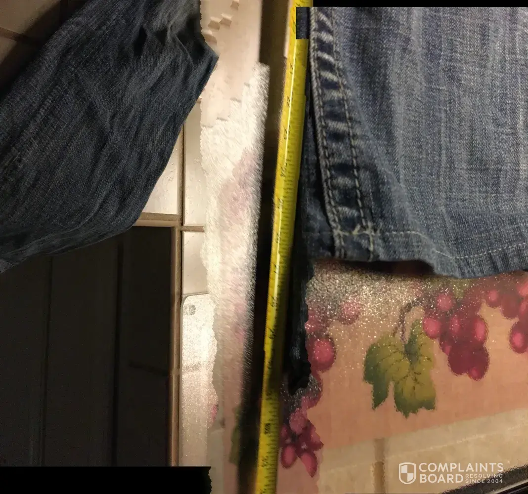 Jean was said to be in "perfect condition ", a 34" inseam. The jean had crooked seaming, a 30" inseam, rolled up hem from dragging, and a disgusting odor! I have sent all this info previously: ComplaintsBoard.com click here: