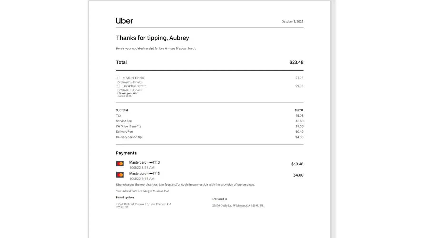 Postmates delivery