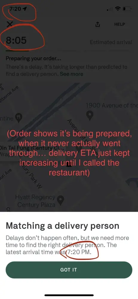 I placed a large food order through the Postmates app. Two hours later, I received a text from the driver that the restaurant never received the order - even though the Postmates app showed that my order went through. Postmates customer service offered to refund my order… as if they were doing me a favor. Two and a half hours and a frustrating phone call later, I was offered a $10 credit and was left scrambling to whip up a dinner. Postmates blamed the situation on the merchant, even though it was 100% their fault. Always a problem with Postmates, never a solution.