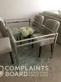 To our horror, we returned home on Saturday 16 Sept 2017 (after a week away) to find the glass top seemingly imploding and glass pieces shattered all around our dining floor. Attached are pictures of this nightmare scene. We had assumed given the good name Pottery Barn has in the US, the dining table will be able to cope perfectly well with NORMAL home life? So we were absolutely flabbergasted when we greeted with our shattered dining table. The only silver lining in this incident is that our pet dog was not underneath it when it broke, nor were we having a meal on it with our feet beneath. If these had been the case, it is scary to think what injuries it would have caused to our dog or us.