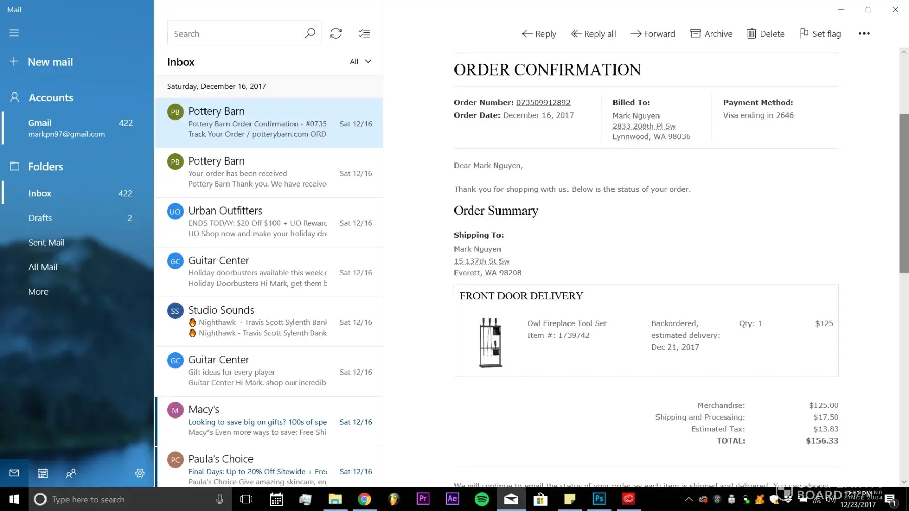 On 11/28 I ordered a whole new bedding onsomble from Potterybarn online,