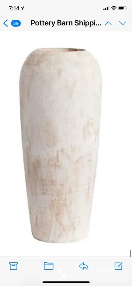 I placed an order for this vase on 6/25/21 which arrived on 7/7/21. Upon opening the product, a strong scent of cigarettes escaped the box. Inside I found an item that looked nothing like the vase that was advertised. The outside was never white washed (as was advertised), it was full of dark stains and burn marks, and was clearly an unfinished product that they forgot to paint in the warehouse. The item is so ugly there is no way the website would include images of it on their customer photo page. The scent was stinking up my apartment that I rent so I threw away the vase as it served no purpose except to damage my apartment. I spoke to two customer service reps on two different days (submitted 7/7, replies 7/8 and 7/9), both of which would not offer anything in return unless I returned the item. I would like a refund immediately -- keep in mind this thing is $200 + tax/shipping ($238).
