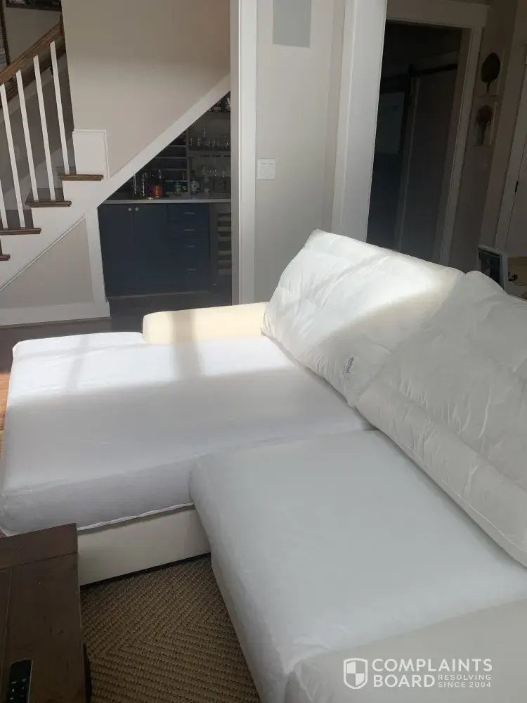 Ordered PB comfort sofa with double chaise lounge and it was delivered with no slipcover. Order #[protected]. I have reached out to customer care and have provided photos with no return call/follow up, nothing! Have waited 5 weeks for the delivery and now we have a bare sofa we can't sit on. Extremely disappointed after spending a lot of $$ and have no answers or time frame when we can expect the slipcover to arrive. Very poor customer service. The side of the chaise cushion also soiled and almost looks moldy. I would expect more from pottery barn.