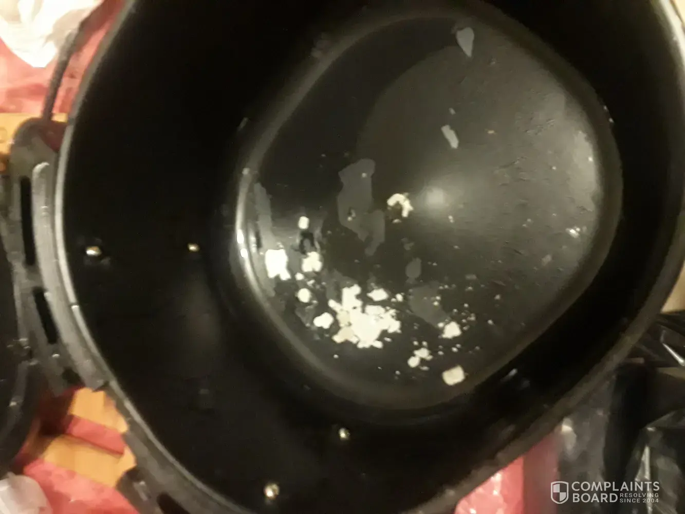 The coating on the inside is all peeling down to metal. Used twice . The black coating is peeling very upset. Thank you in advance. Denise.[protected]@gmail.com