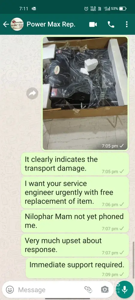 Powermax is a big brand company this type of issue is not tolerable. This matter is already completed 02 months.