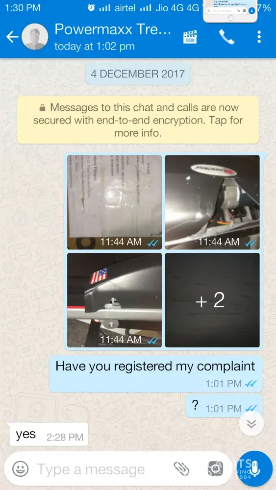 After almost 15 days usage treadmill stopped functioning. I made my first complaint to powermax fitness by phone call on 18/10/17 and called continuously for three days but nobody responded then I made my complaint through amazon and got a response mail by powermax fitness on 21/10/17 assuring to resolve my problem as soon as possible but all I got was their mail promising.. After a long follow up by e-mail and calls they sent a technician on 04/11/17 who was unable to resolve the problem.. Since then nobody visited.