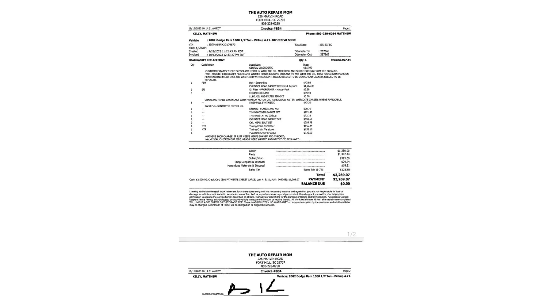 We purchased a motor in 2021 and a few weeks ago by the way the truck was acting we assumed we had a blown head gasket. Called powertrain warranty company first to see what we needed to do. They told us to take it to a shop and have the shop to call them and from there we will deal with the shop & pay the shop and they will reimburse us our money. We took...