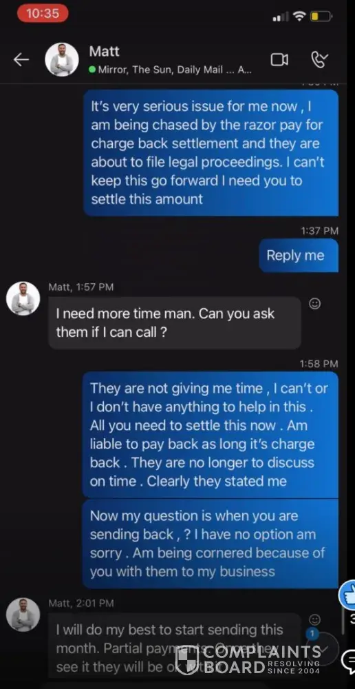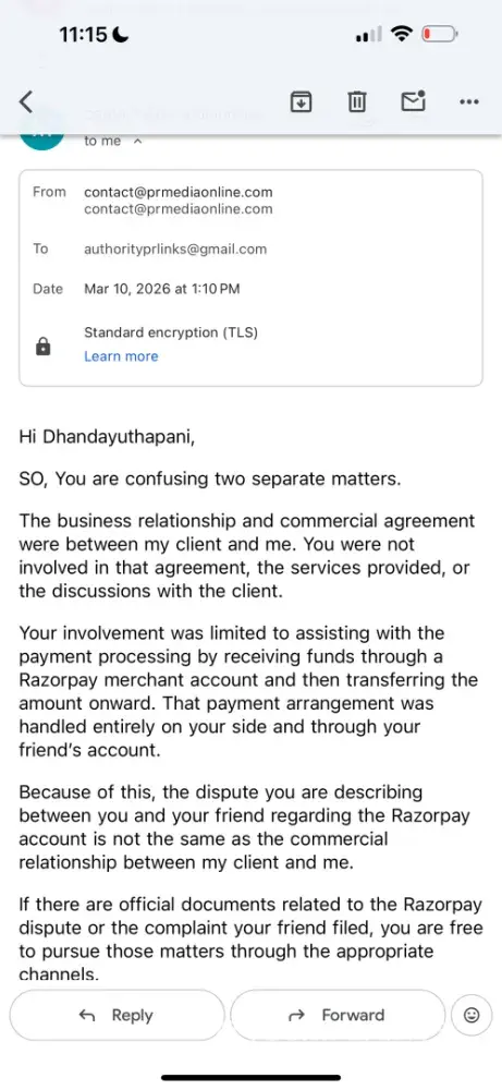 I am filing this complaint regarding a payment dispute with Prmediaonline.com related to services and financial arrangements from 2022. During that period, funds were transferred in good faith as part of a business-related arrangement. The recipient acknowledged receipt of the funds and engaged in continued communication over an extended period regarding...
