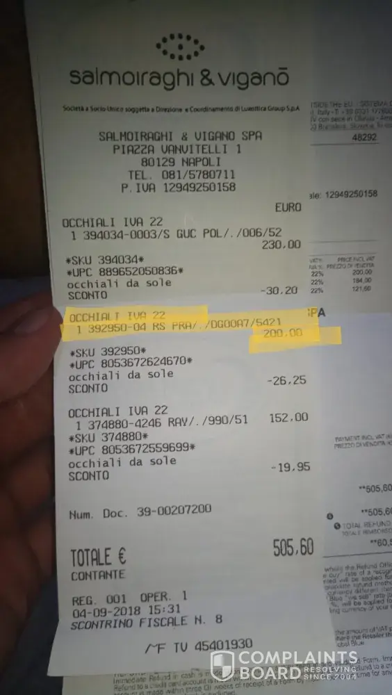 Hi. I purchased Prada's sun-glasses in Naples, Italy about 6 months ago 4/9/18. at a cost of 200 euros. I live in Israel so I have no way to get to the store in Italy. I take a very good care of my glasses, But on my last flight, the reflector simply disengaged from the handle, I tried to fix them in one of the stores in Israel and they claim that the repair cost is 150 euros. This is very unfortunate because I did not think that I would have to deal with such a situation within only six months, And the sun glasses are still under a one-year warranty.