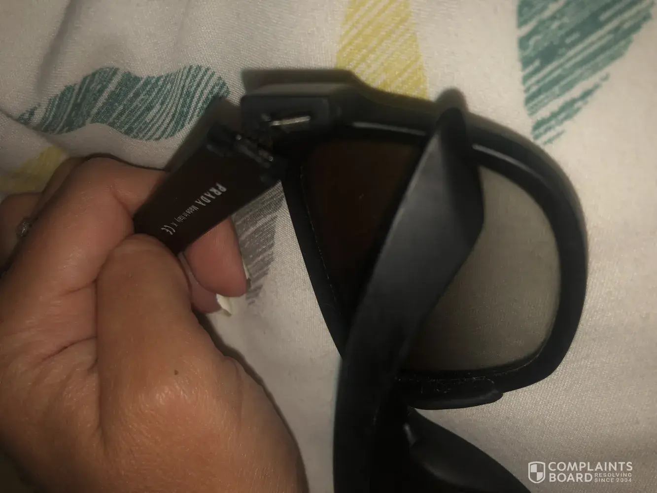 Always brought Prada sunglasses but brought my son a pairs And they are now unable for him to wear due to the Prada sign on side peeling off he cant and won't wear them no-more as was actually bullied by people saying they are fake which caused him a lot of distress. They were my sons birthday presents and his first designer item he'd had and loved them, he was and still is so upset. I'd understand if the item was counterfeit but they are genuine and are not cheap they was purchased from the sun glasses hut. Unfortunately I will be thinking twice again purchasing another pair of Prada glasses which is a shame as was my husbands best designer. I would never of expected that to happen with goods that are meant to be of a excellent quality. The glasses were worn literally about 5, 6 times at the most.