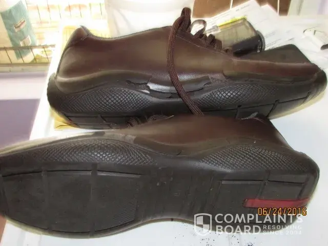 I went to a High school graduation and noticed something funny with my Prada shoes. The person sitting next to me also pointed to my shoes and was shocked for what she saw. I was also shocked and amazed. The shoes were literally falling apart. The soles just completely disintegrated as a time bomb had been placed and at a certain date and time it went off causing the soles of this very expensive shoes (both pairs) to came apart. I was saying to myself how is it possible for Prada shoes to self destruct? I decided to take the shoes back to (6/15/16) Neiman Marcus, where I had bought them in the first place. The unfriendly (no greeting as I approached them) staff (a man and woman) told me that there was nothing they could do, as I did not have a receipt. They did not even offer any help except to say "take them to the Prada store". I exited the store and went to Nordstrom which also sells Prada shoes and had the same experience. The gentleman at the counter told me that there is nothing they could do and suggested to take them to Prada. A few of days (6/23/16) later I went to the Prada store at the Beverly Center. I was greeted and helped by Lindsay( The store manager). This is what she offered to solve the self-destructing shoe issue. Mail the shoes to New York and pay the $20 dollar shipping fee. After approximately 8 weeks they would respond with either able or unable to repair. If repair was possible they would charge $200 dollars for the job. I was really extremely disappointed by Prada's policy in making good to a pair of shoes that were practically new and had been worn very little and literally self destruct. I decided to email Prada and briefly explained the problem looking forward to a more positive response from the Prada company, but never got a reply to my email. That is Prada for you. Beware when you buy from Prada, as they do not stand behind their products. I say that based on my own personal and frustrating experience.