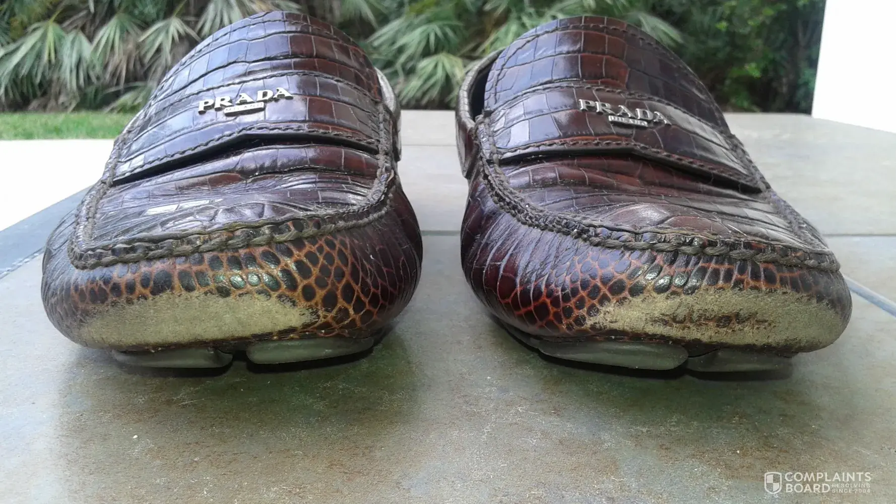 This is the quality of $400+ shoes the least I expected is some disclaimer on the material. I used to be a huge fan of Prada, now I will never ever own any Prada shoes anymore. These were my favorites footwear and now it's less than junks. Thanks for nothing Prada. If any of you are with me, please spread out the pics.
