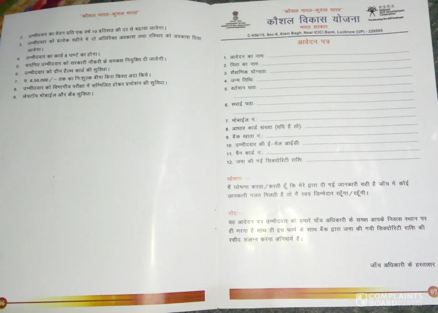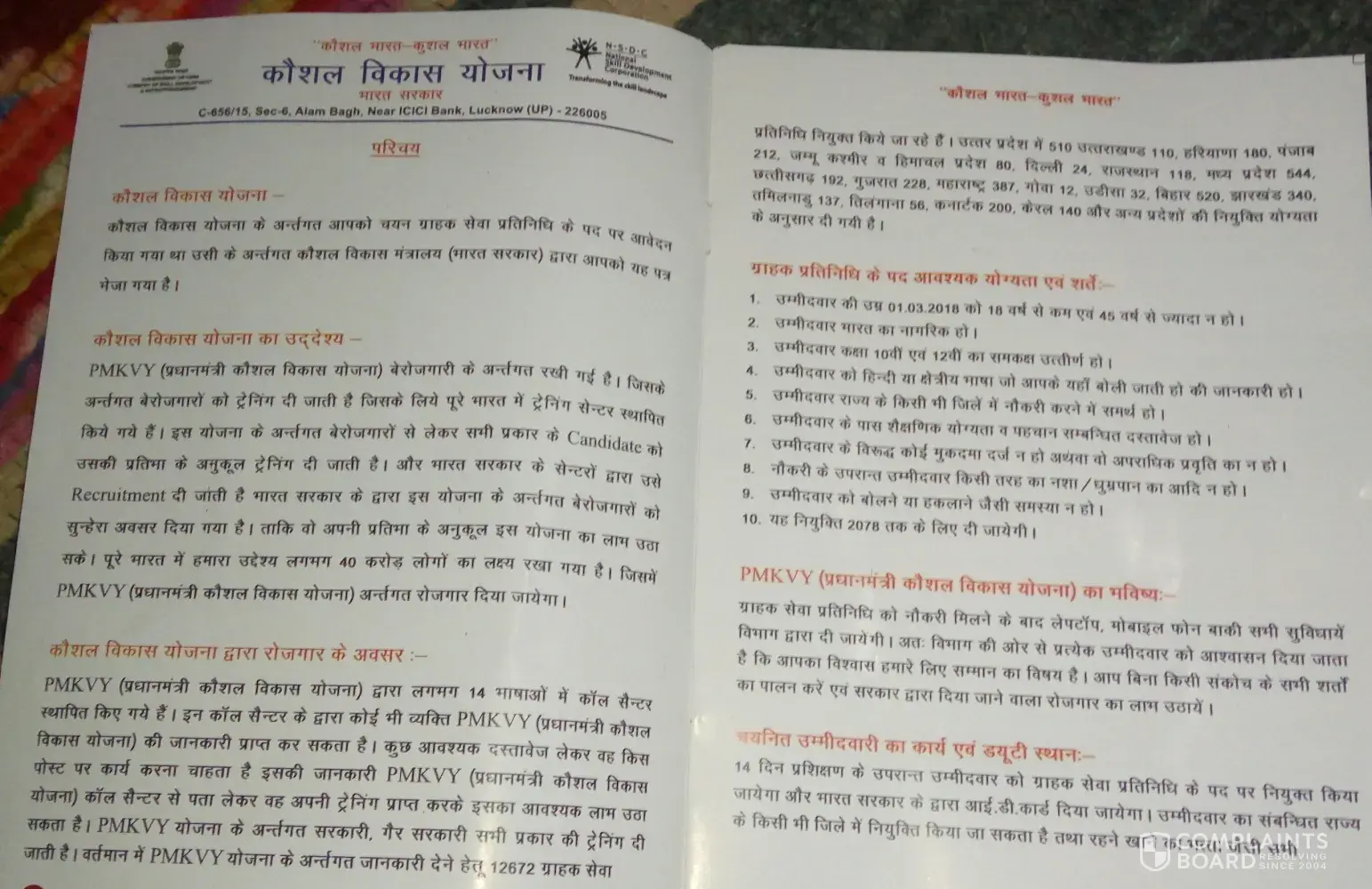 I am complaining about process of job requirements by pmkvy siddharth nagar, uttar pradesh 272207